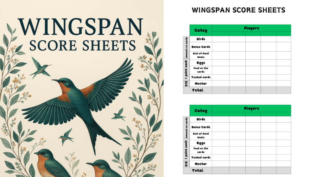π² Wingspan Printable Score Sheets β PDF Download